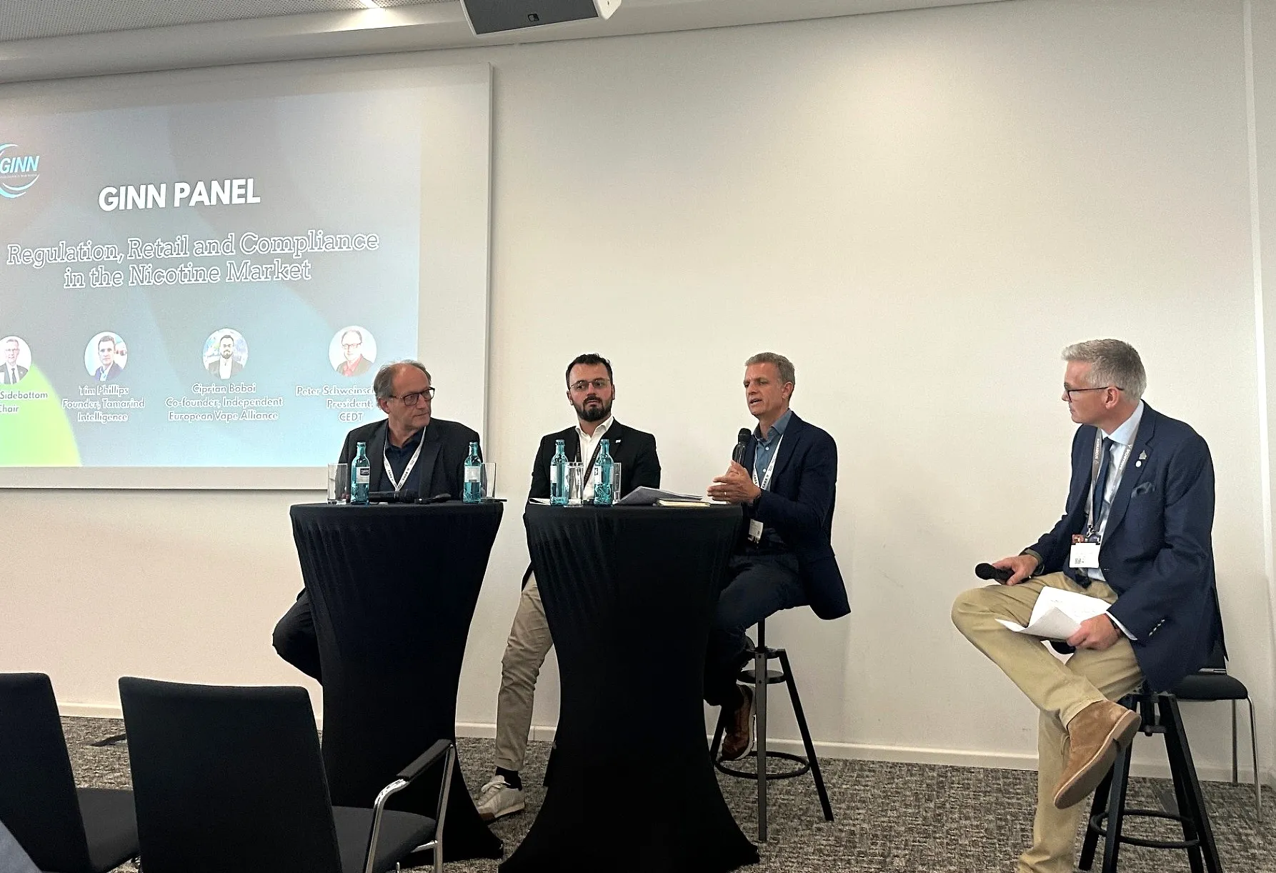 The panel session, “Navigating the TPD3, Tobacco Excise Directive and WHO FCTC COP11,” featured regulatory experts including Robert Sidebottom (Global Institute for Novel Nicotine, Arcus Compliance), Tim Phillips (Managing Director, Tamarind Intelligence), Ciprian Boboi (Founder & Board Member, Independent European Vape Alliance – IEVA), and Peter Schweinschwaller (President, European Confederation of Tobacconists – CEDT).